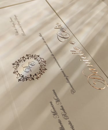 21x29cm | papel markatto 320g | impressão em serigrafia epóxi | nomes em relevo metalizado | brasão do envelope em relevo seco e serigrafia perolada