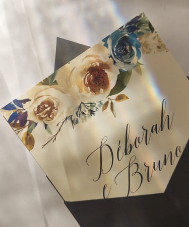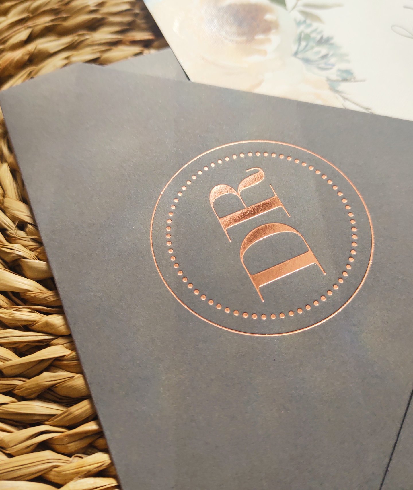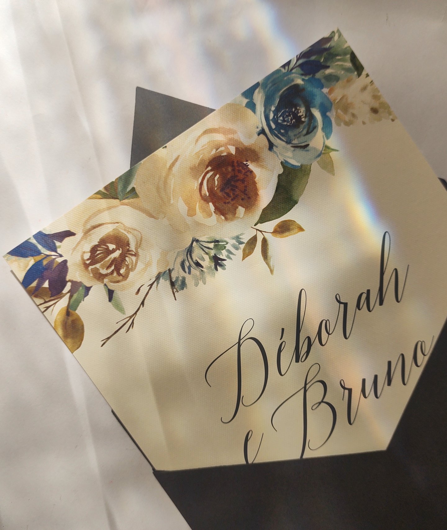 17x23cm | papel markatto 240g + colorplus 240g | impressão em serigrafia epóxi | floral em digital laser | brasão no envelope em hot-stamping